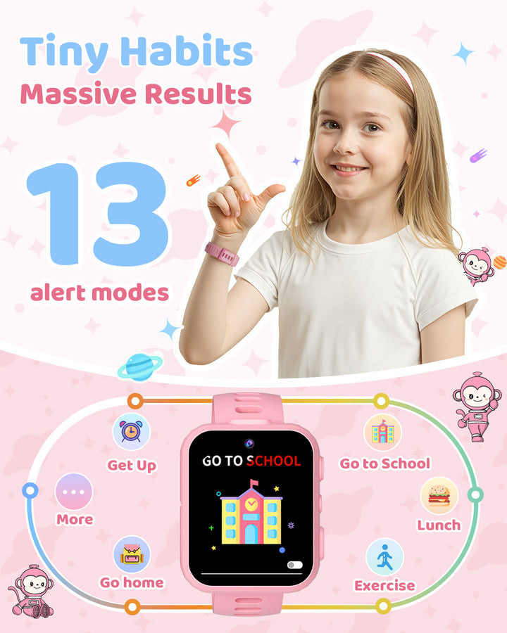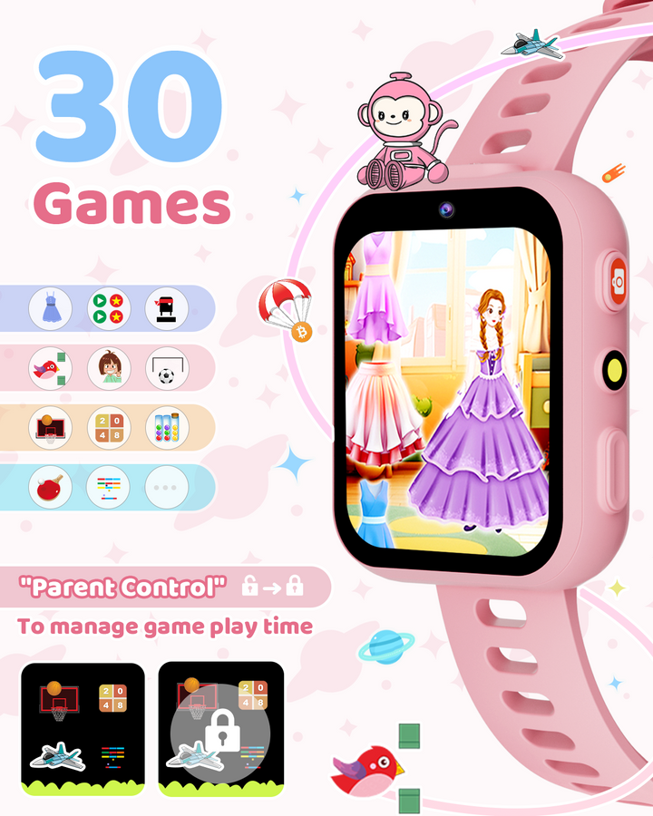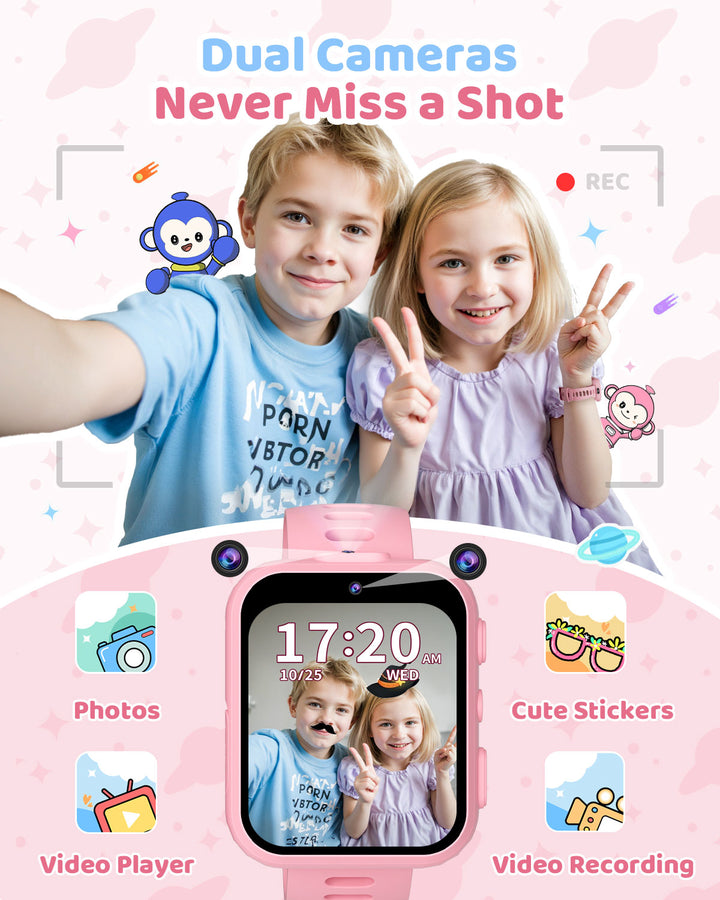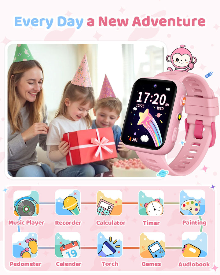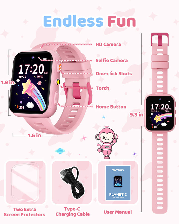TICTIKY Planet 2 Kids smart watch with pedometer, 2 Cameras, 30 Puzzle Games, Learning Cards, Video Music Player, Audiobooks, Alarm Clock, Birthday Gifts Toys for kids girls 4-10