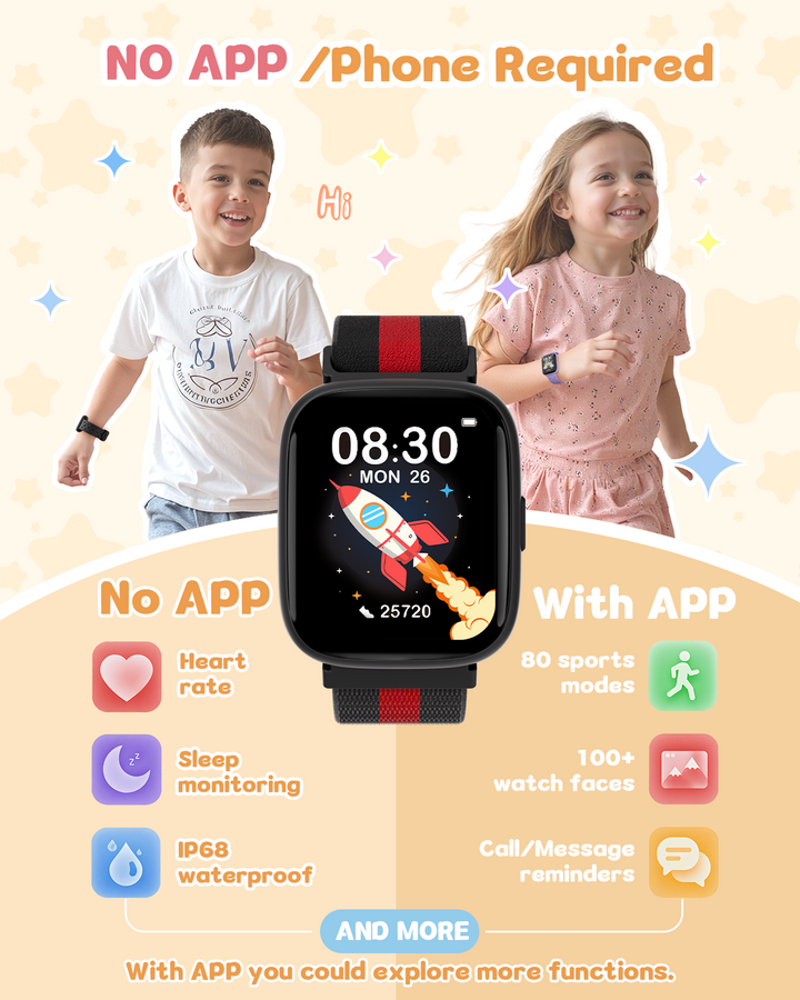 - [Customizable Watch Face & 1.83"HD Touch Screen]: Personalize the 1.83"HD touch screen with 100+ cloud dials or upload your child's photos to create unique watch faces. This feature sparks creativity and makes the watch truly their own.
