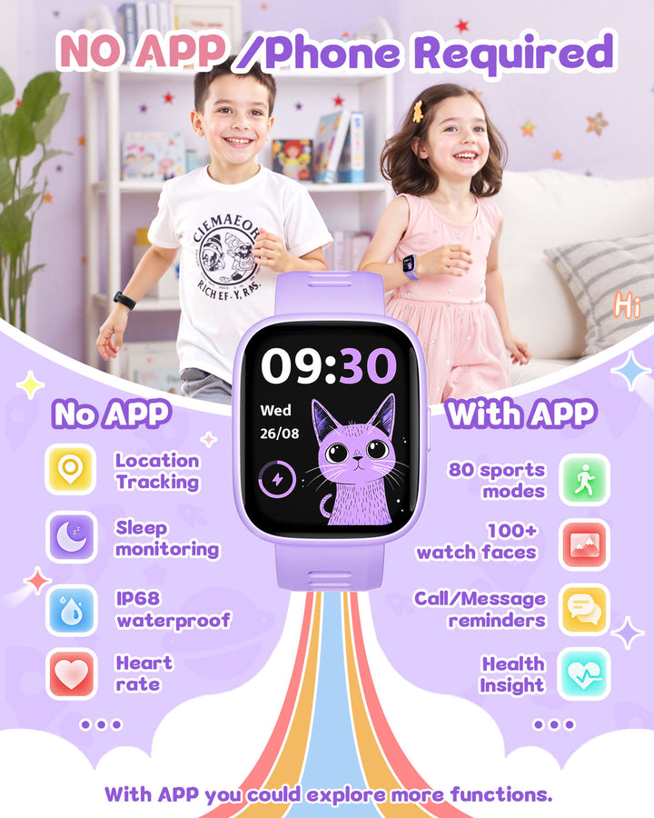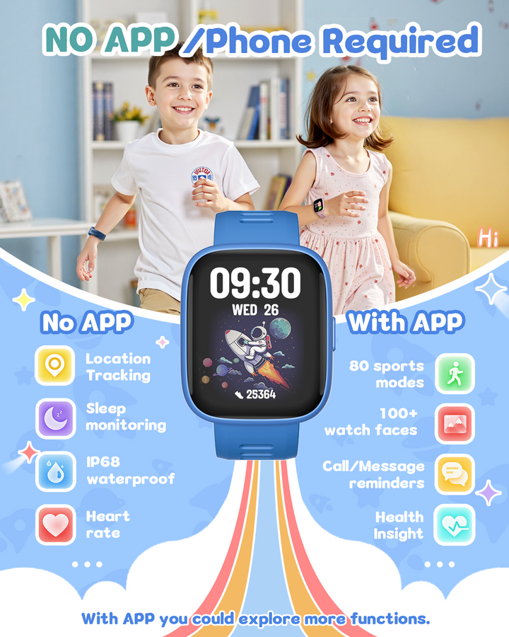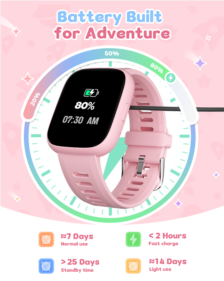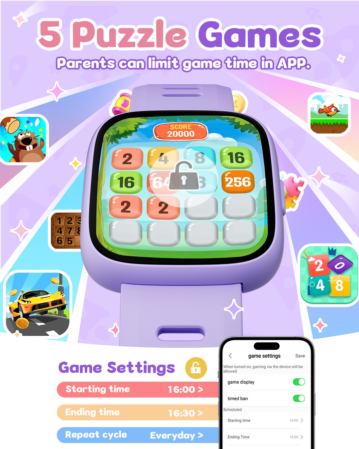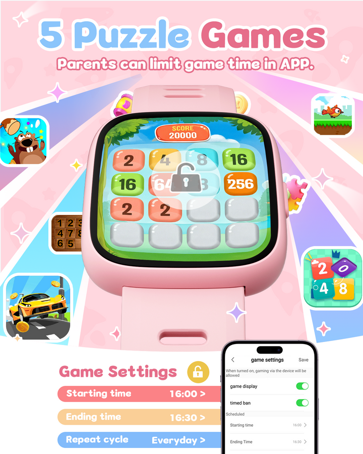 Equipped with 5 built-in puzzle games to boost reaction and calculation skills, this smartwatch also includes parental controls. Use the app to restrict game access during school hours or lock games entirely, ensuring a balanced experience.