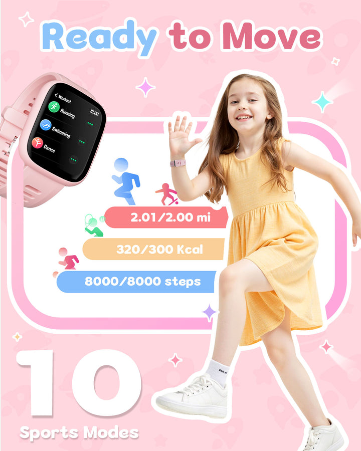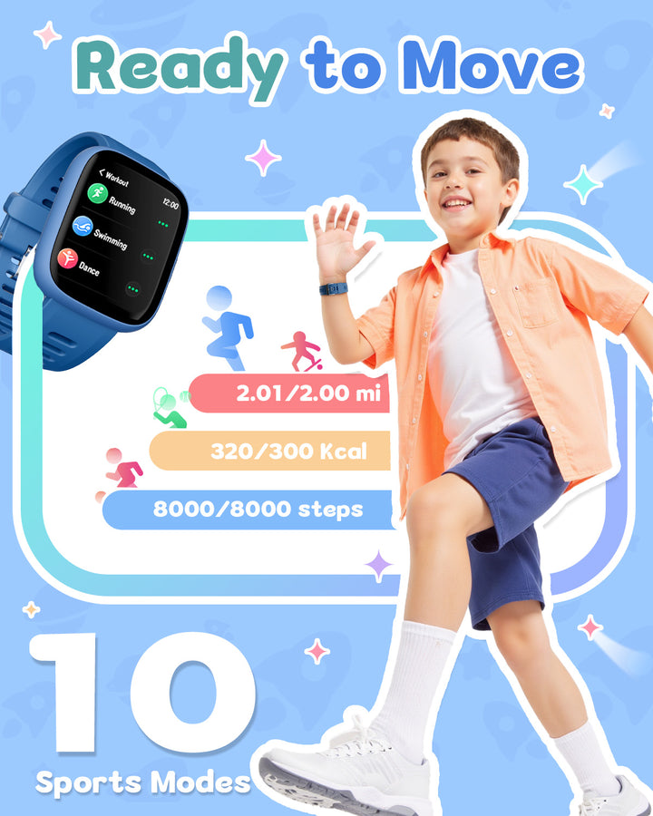 The Verfit Smart Watch for kids and teens automatically tracks steps, distance, calories burned, and active minutes. With support for 80+ sports modes—including walking, running, cycling, swimming (IP68 waterproof), and basketball—it’s the perfect companion for active kids.